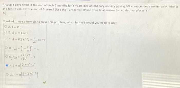 Solved A Couple Pays 400 At The End Of Each 6 Months For 5 Chegg Com